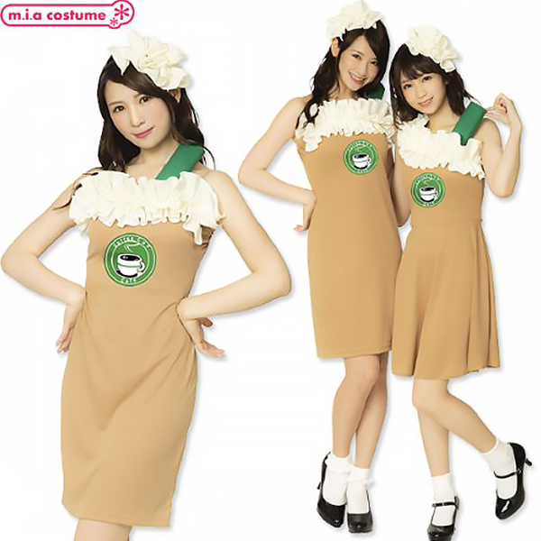 ハロウィン仮装やクリスマスの仮装、変装用のステージ衣装にも!フォームミルクをイメージした胸元のフリルがポイントのワンピースです。ストレッチ素材なので着やすくコーヒーカラーなワンピースが印象的♪付属のシールを胸元に付ければスタイリッシュなカフェスタッフに!舞台衣装としても映えますよ♪※洗濯機不可、塩素系漂白剤による漂白不可、アイロンは中温で当て布使用、ドライクリーニング不可、摩擦や水濡れにより色移りする恐れがあります。