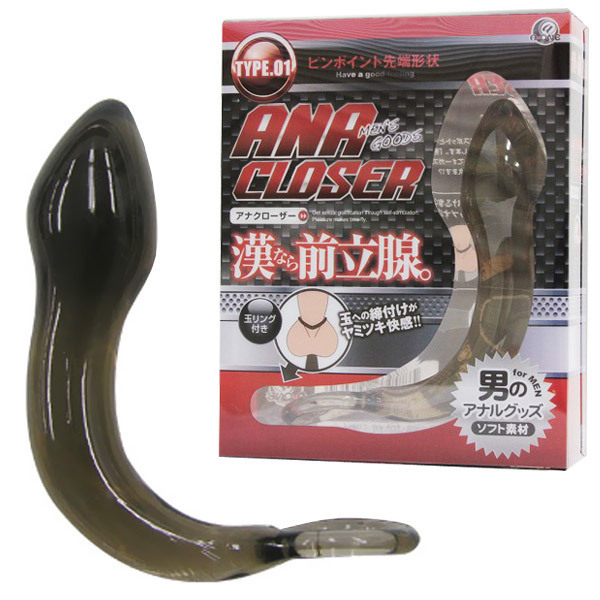 男のGスポットを直撃!ソフト素材の前立腺グッズ「アナクローザー TYPE.01」。挿入をサポートする、緩やかなカーブボディの少し尖った亀頭型先端が、男のGスポットである前立腺をピンポイントで刺激します!また、リングの持ち手部分を玉袋の根元に掛ければ、締め付け効果により射精時の快感も上昇!女性のように何回もオーガズムに達したい!という方にお勧めの男性用アナルグッズです。