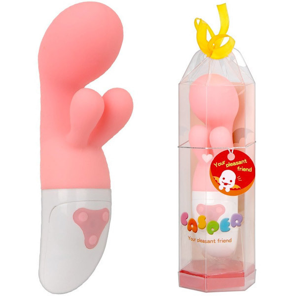 思わずキュンとしちゃう!可愛いデザインからは想像もつかないほどの力を発揮するバイブレーター「キャスパバイブ」。安心安全なシリコン素材を採用!巨大ヘッドバイブでGスポットを刺激しつつ、2つのクリバイブでクリを挟んで楽しむ、デザインも使い方も新しいアイテム。持ち手部分にある3つのボタンスイッチで、ON・OFFから4種類の振動まで簡単に操作できます。アナタがまだ知らない、未知の刺激と快感がたっぷり味わえるバイブレーターです。単三電池×2本付属。