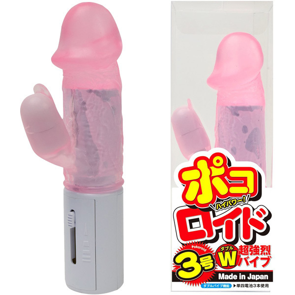 超強烈ダブルモーター搭載!ポコロイドシリーズのバイブレーター。●クリアピンクの定番フォルム●Gスポを擦り上げるカリ高仕上げ●平らなベロ付きクリバイブ●本体中央+子機のWモーター仕様●振動調節は無段階スライド式●安心品質の日本製。振動機能のみのスタンダードタイプながら、ハイパーモーターをダブルで備えた「ポコロイド」シリーズの3号で、奥まで響く超強烈なバイブレーションをお楽しみください。