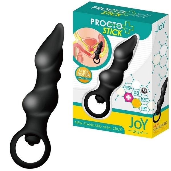 挿入しやすいスリムヘッドで前立腺&Gスポをキャッチ!プラグ風のスティック型アナルバイブ「プロクトスティック ジョイ」。●メリハリのある高弾力なボディ●扱いやすいグリップリング付き●先端が前立腺をダイレクト刺激●内部をグリグリ圧迫する大コブ●腸全体に響き渡るローター振動●三段階の振動強弱切り替え搭載●内蔵ローターは取り外し可能。細身の先端でスムーズ挿入&ピンポイント刺激!グリグリ掻き回して下半身を震撼させる電動アナルグッズ。スリムな先端のスティックタイプながら、プラグのように膨らんだボディ中央のコブでしっかりとした挿入感に!さらに、ローター振動との相乗効果でより深い快感を味わえる次世代型のスティックバイブです。※電池周囲の保護用シートは外さないでください。