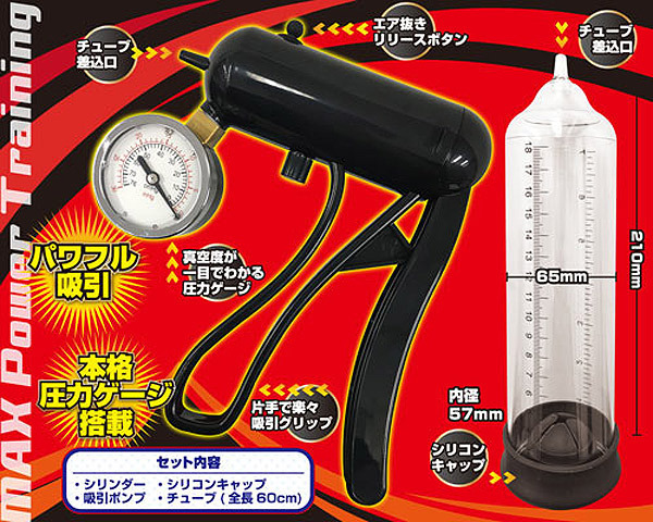 グリップを握るだけで強力吸引できる手動のペニスポンプです。使い方はいたってシンプル!シリンダーにすっぽりとペニスを収め片手でグリップを握るだけ。シリンダーは目盛付きでどれだけサイズがアップしたかをすぐに実感できるから、毎日の鍛錬がきっと楽しみの一つに♪また、吸引ポンプは目視できる圧力ゲージ付きで安全にも配慮された設計。徹底管理で無理のないトレーニングを行えます♪使用の際はシリコン製キャップにローションを塗ることで身体への密着度がアップ!ただし、あまりローションをつけすぎると返って滑ってしまう場合もありますので少量でお試しください。使い終って気になるのは洗浄方法ですが、シリンダーとキャップは丸洗い可能なので、いつでも清潔な状態でお使いいただけます♪日々の鍛錬で理想のサイズを手に入れよう!