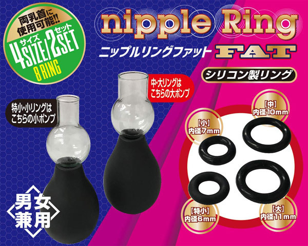 乳首やクリを吸引、リングで締め付けるポンプ付きニップルリング ファット(4サイズ2セット)。ノーマル版と比べてリングの厚みを二倍にしたことで締め付け感が大幅増!締め付け感を味わうもよし、開発用としても最適です。男女兼用