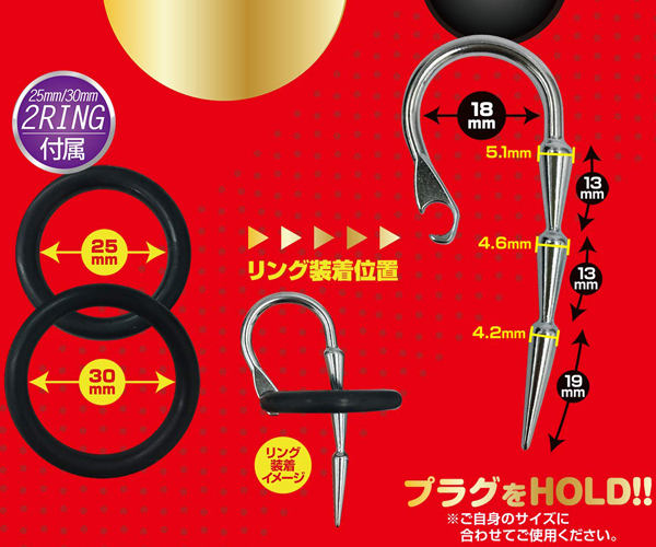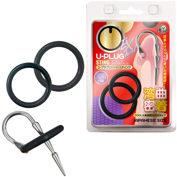 高刺激&圧迫感!!尿道アイテム『U-プラグ』に上級者向けのEXシリーズが新登場!COOL&重量感のあるメタルタイプはそのままに前作よりもハードな見た目と高次元の刺激がアナタの探求心と尿道を満たします。普通では満足できない尿道エキスパートへ!付属のリングを装着してプラグ位置を調整可能。リングサイズはご自身に合わせてお選びください。<スティング>しなやかなカーブで密着しつつ緩急のある棘のような形状が挿入しやすさと圧迫する刺激をもたらします。※無理のない範囲でご使用ください。商品特性をご理解のうえ自己責任でお楽しみください。