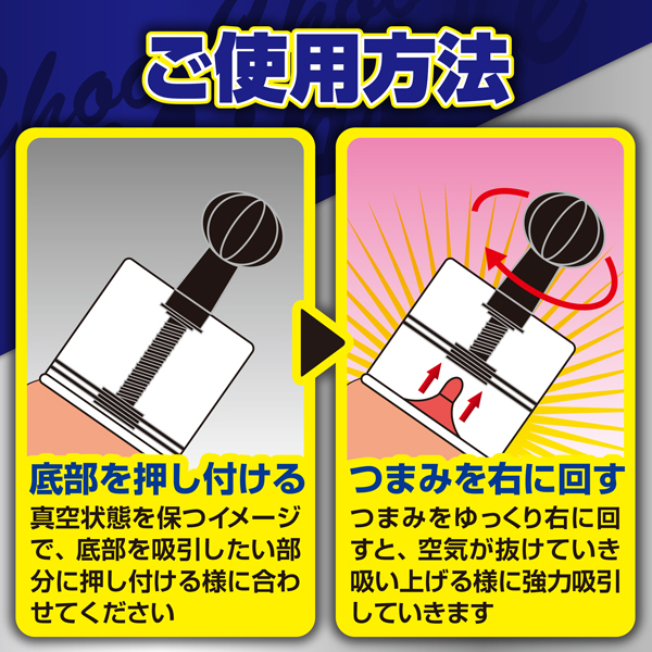 超絶バキュームッ!超強力吸引で乳首調教!吸う快感&吸われる快感をアナタに。つまみをくるくる回すだけという簡単な使用方法で、乳首をギュインギュインと吸っていきます。真空状態を保つイメージで底部を吸引したい部分に押し当て、つまみをゆっくり右に回すことで強力吸引!皮膚にしっかりと密着するように、ローションなどを使うとさらに快感度もアップ!乳首だけでなく、アイデア次第でいろんな吸引調教を楽しんで♪サイズ違い、AとBの2タイプ同時発売!
