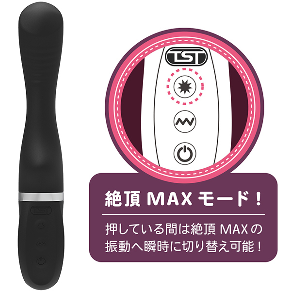 12LOVEシリーズからスタイリッシュバイブが新登場!静音タイプながら弱振動から強振動の12パターンを搭載し、ボタン1つで簡単ラクラク操作♪ボタン上部を押している間はモーター最大回転数15000RPMの超強力振動により一気に絶頂MAXへと導きます。バイブの先端はゆるやかなフラット形状なので、なでるような刺激が可能となり抜群の快感度を実現。最適な挿入角度を追及した設計デザインとなめらかな高品質シリコン素材によりGスポットへ強い刺激を与えます。本体は安心の生活防水で、付属の単4電池×2本によりすぐ使用できます。●カラー:ブラック