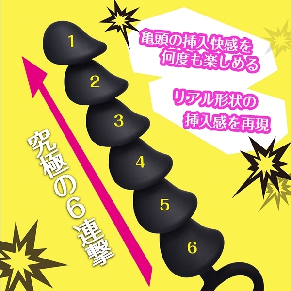 6連続の挿入快感が楽しめるユニセックススティック登場。肌触り滑らかなスムースマットシリコン素材採用の程良い硬さのこだわりの形状。ポコポコと出し入れ時に挿入快感を連続で擬似体験出来ます。持ち手部分にはしっかり太めの二指型リングを採用、使用感を高めています。サイズ感・柔らかさ・形状、全てにこだわった特殊スタイルスティック。