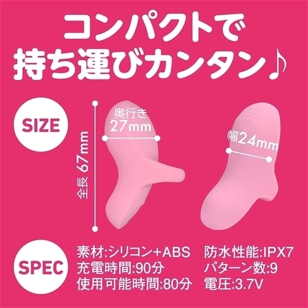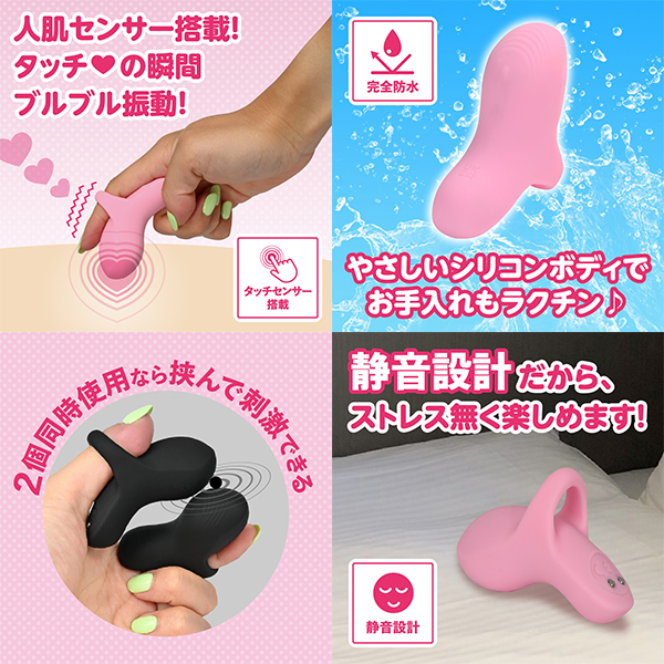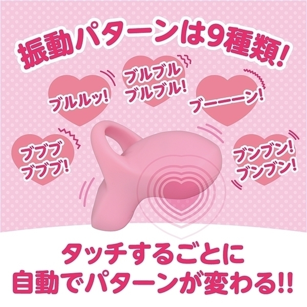 触れたらブルブル振動するタッチセンサー搭載のシリコンフィンガーローターです。指に装着して電源ONにすれば触れるたびに振動して離れると停止するので無駄な振動が無い直感的な使用が可能です。衛生的で臭いカットのシリコンボディの滑らかで上質な触り心地で色んな部位を刺激出来ます。また、2個装着すれば挟んで刺激も楽しめます。防水等級IPX7の完全防水だから水に濡れても安心。しっかり洗えて衛生的です。90分の充電で最大80分使用可能(使用環境により大幅に増減します)リチウムイオンバッテリー搭載。触れる度に変化する9パターンの振動を楽しめます。●カラー:ピンク