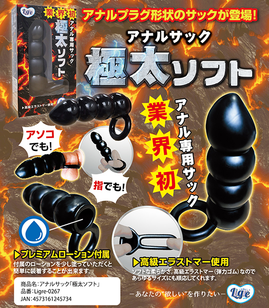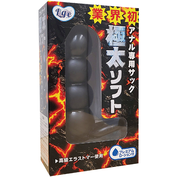 業界初!アナル専用のサックが登場!それがアナルサック「極太ソフト」です!アナル専用サックとして、アナルプラグのような形状!見た目にも強そうな作りですが、本体はやんわりソフト。高級エラストマーを使用しておりますので、安心して装着して頂ける作りとなっております!サックは装着がしにくいので、プレミアムローションが付属しております。これを少し塗って頂くと簡単装着可能です!見た目にも格好いいアナル専用サック「極太ソフト」!怒張したアソコに被せたら激しいプレイの開始ですよ!