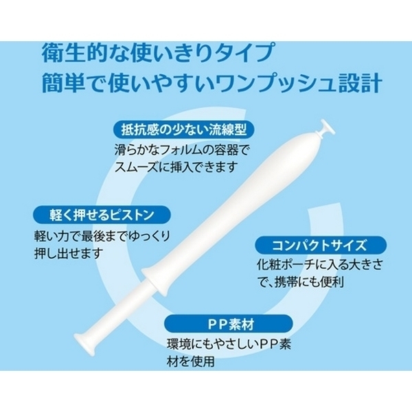簡単ワンプッシュでデリケートゾーンのお悩みをスッキリ解消!どこでも使える新感覚ジェルタイプの膣内洗浄器「インクリア(3本入)」。●ビデに代わる膣専用ケアグッズ●一回一本使い切りの膣洗浄器●弱酸性&無香料の透明ジェル●自浄作用を高める乳酸を配合●洗浄ジェルをダイレクトに注入●直接触れずに使えるペン型容器●簡単かつ衛生的なワンタッチ式●使いやすいなめらかフォルム●婦人科医との共同開発で安心●携帯しやすい個包装×3本入り。ニオイやおりもの、乾燥が気になる時や生理の終わりかけにも!タンポンと同じような注入方法で気軽に使えるジェルタイプの膣洗浄グッズ。水で善玉菌も一緒に洗い流してしまうビデとは違い、洗わず直接注入して乳酸を補うことで膣内の自浄作用を高め、膣内環境の改善をサポートする新感覚のデリケートゾーン用ケアグッズです。