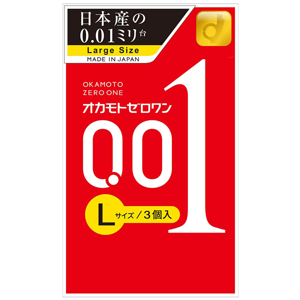 オカモト史上最薄コンドームに待望のゆったり大きめサイズが登場!うすさ0.01ミリ台コンドーム「オカモトゼロワン」Lサイズ。●オカモト史上最薄の0.01ミリ台●先端から根元まで均一な薄さ●ゆったり大きめLサイズ(3個入)●ゴム臭のない水系ポリウレタン製●独自配合の柔らかな仕上がり●クリアカラーのスタンダード型●安心の自社工場で作られた日本製。「ゆったりサイズのオカモトゼロワンが欲しい!」そんなユーザーの声に応えて誕生した大きめLサイズの極薄コンドーム。ラテックスアレルギーも考慮された極薄のポリウレタン素材は、高い密着感かつ熱が伝わりやすいのでパートナーの温もりや感触をダイレクトに感じられます。