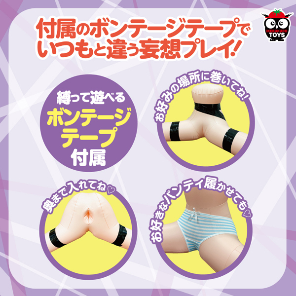 等身大のこだわり大開脚ボディが新登場!ホールポケットにお好きなホールを装着して、正常位、後背位、騎乗位また付属のビンテージテープで縛ったり、お好みで遊び方色々。あなたのお気に入り体位でお好きなプレイを♪