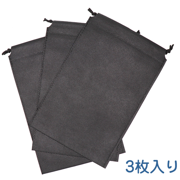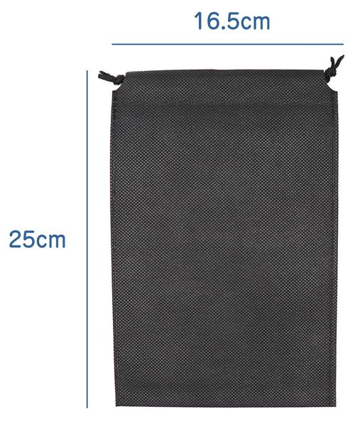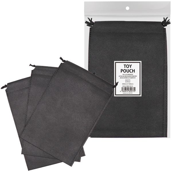 おもちゃ収納に最適な不織布素材。巾着袋で締めるだけ!中にいれて締めるだけの簡単収納。遮光性と通気性に優れた不織布を採用しているので、油漏れや毛羽、埃等の付着は心配いりません。おもちゃの洗浄後の保管、収納に最適な巾着袋です。内容量:3枚、サイズ:250mm、165mm、カラー:ブラック