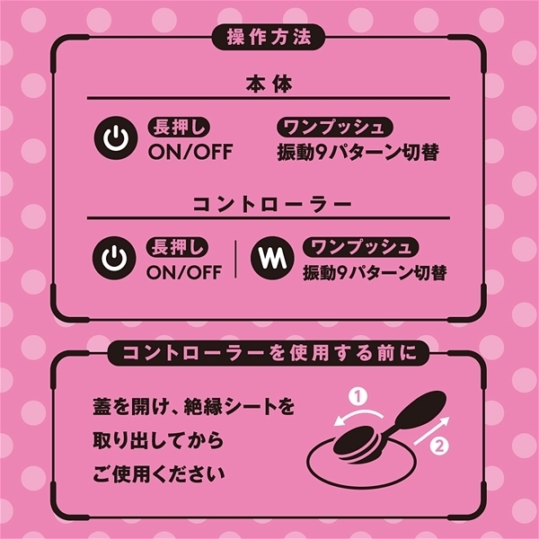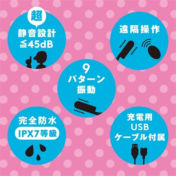 こっそり遊べる!超静音≦45dB、プレイの幅がグンッ!と広がる完全防水&遠隔操作可能な静音ローター!思わず声が出てしまう程のパワフルな9パターンの振動に対し、静音性にもきちんと配慮した造りなので、お風呂場でも道端でも…いろんな場所でレッツプレイ!完全防水仕様なので使用後の丸洗いも可能で清潔に保てます。シリコン紐付きなので、取り出しもラクラクです。どこでもサカって絶対絶頂!●カラー:ブラック