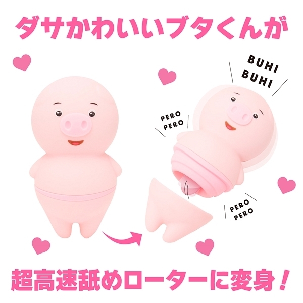 超高速!舌舐めローター!ダサかわいいブタくんが一生懸命舐めます!多彩なペロペロ6パターンで絶対絶頂!高品質ソフトシリコン使用のふんわりとろける柔らか舌!誰でもかんたん操作のワンプッシュ式!使用後も清潔に保てる生活防水IPX5。周りを気にせず遊べる静音設計≦50dB。