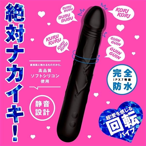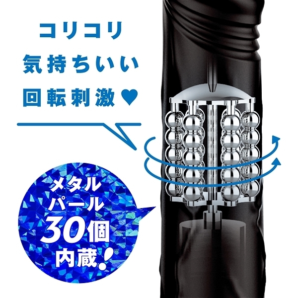 絶対ナカイキ!超愛を感じる回転バイブ!コリコリ気持ちいい回転刺激!メタルパール30個内蔵!スーパー回転10パターン!優しくコリコリからの激しくかき回すパワフルスイング!ブルブル振動9パターン!濡れすぎ注意!?奥まで響くゾクゾク快感!全90バリエーション!直接肌に触れるものなので高品質ソフトシリコンを使用しています。完全防水IPX7等級。静音設計。挿入部分の長さ:160mm。先端部分の最大径:32mm。