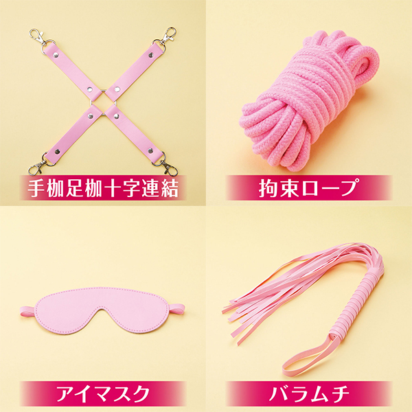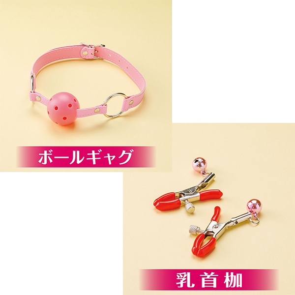 「悶子のいやぁ〜ん感じちゃう…〜ソフトSM10点セット〜」大人気「悶子」シリーズから、初心者でも手軽に本格的なプレイを楽しめるSM10点セットが登場です。本格的、けれど初心者向けなので、装着する人に優しい感触の作りです。また首輪・手枷・足枷にはふわふわの優しいファー付きです。本体:アイマスク(8.0×19.0cm)、ボールギャグ(ボール直径4.5cm・バンド長さ最大63.0cm・幅2.0cm)、リード付き首輪(首輪長さ最大51.5cm・幅5.5cm・リード長さ95.0cm)、乳首枷(7.0×3.0cm×2個)、手枷(長さ最大32.0cm・幅5.0cm・チェーン長さ10.0cm)、足枷(長さ最大37.0cm・幅5.0cm・チェーン長さ10.0cm)、手枷足枷十字連結(31.0×31.0cm)、バラムチ(全長62.0cm)、フェザー(全長27.0cm)、ロープ(全長55.0cm・太さ0.8cm)