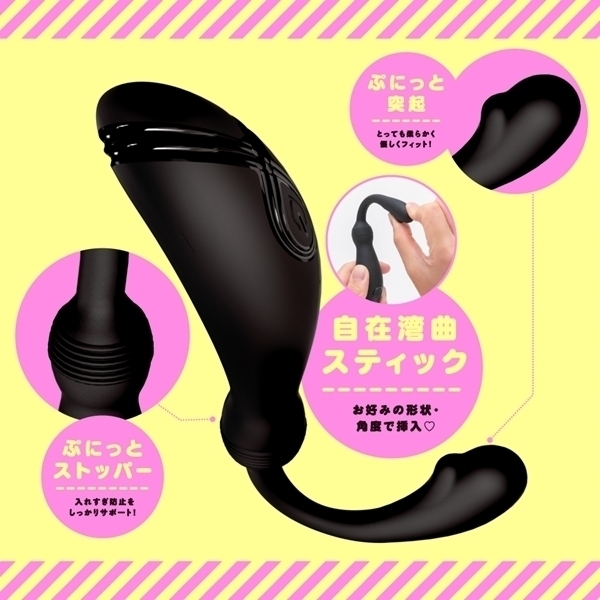 超細型スティックで優しく挿入&ピンポイントで即イキ!!PPPより超初心者にオススメなアナニーバイブが登場!高品質ソフトシリコン&ツルンと簡単挿入フォルムの超細型スティックで安心して挿入ができる!!先端のぷにっと突起はとっても柔らかく優しくフィット!自在湾曲スティックでお好みの形状・角度で挿入♪ぷにっとストッパーが入れすぎ防止をしっかりサポート! セルフプレイも簡単で超玄人の即イキにも便利っ!●女の子みたいにイケるメス堕ちイキ仕様の優秀バイブ!本体は充電式なのでエコに使用可能。本体:充電時間約100分、本体:最大連続稼働時間約90分(初期振動パターン未変更時)