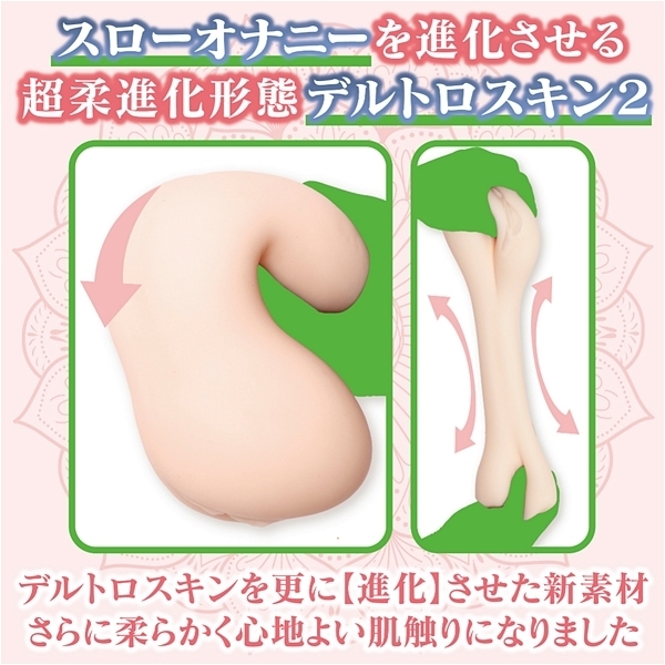 【デルトロカルマ瞑想スロオナスパイラル】は長時間を瞑想スローオナニーで瞑想する!をコンセプトに進化する!デルトロシリーズ第4弾です。シンプルで洗練されたスパイラルデザインと高い機能性の「デルトロスキン2」素材が絶妙にマッチした「瞑想スロオナスパイラル」は穏やかな安らぎが広がる、深い瞑想の領域を求めた自信作です。超柔軟素材のデルトロスキンをさらに進化させた「デルトロスキン2」は嫌な臭いを抑え、ベタつき感をさらに抑えた、快感を極めるべく進化させたデルトロカルマ独自の超柔新素材です。ボリュームたっぷり780グラムのふわふわボディの本体はやわらかくしっかり密着し絡みつき、紳士の皆様の「握る力」をダイレクトに伝えることが可能で「先端のみ握る!」「根●のみ握る!」などお好きなプレイで楽しめます。長時間プレイでも飽きの来ない内部構造で「瞑想超持●自慰の世界」をお楽しみください。長期保管に便利な専用ブリスターケース付き、オリジナルローション付属。