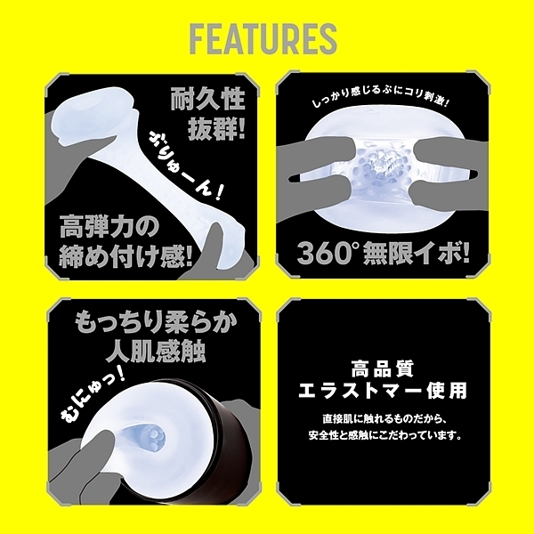 超絶バキュームパワフル振動のハイクオリティ電動オナホが登場!根こそぎ飲み込む吸引7パターン!芯まで震える強振動7パターン!高性能モーター搭載によりパワフルなのに静かな吸引振動を実現しました。稼働音を気にせずプレイに集中できます。初心者にも使いやすい電動ホールです。シンプルな2つボタンで片手でも操作が可能です。インナーホールを取って洗うだけなので、後処理も超簡単です。重量約620gで手持ち操作も楽々です。直接肌に触れるものだから、安全性と感触にこだわり高品質なエラストマーを使用しています。耐久性抜群の高弾力素材が吸い付きながら締め付けてくる搾精吸引!もっちり柔らか人肌感触の挿入口と360°無限イボはしっかり感じるぷにコリ刺激がリアルを超える!静音設計≦65dB。充電用USBケーブル付属。