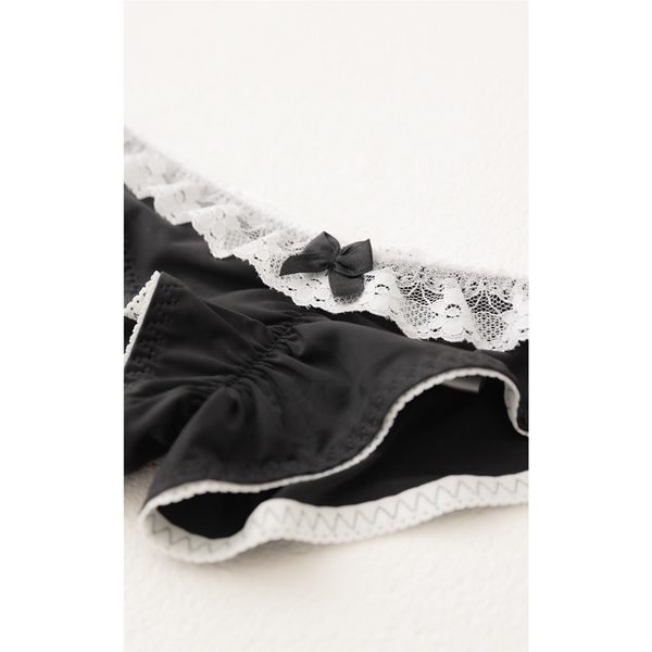日本国内の工場で縫製された、伸縮性のある肌触りの良いマイクロファイバー生地を使ったメイドスタイルのローライズショーツです。クロッチ中央にくい込みゴムを使用した、キュートでセクシーなメイド風デザインのショーツです。