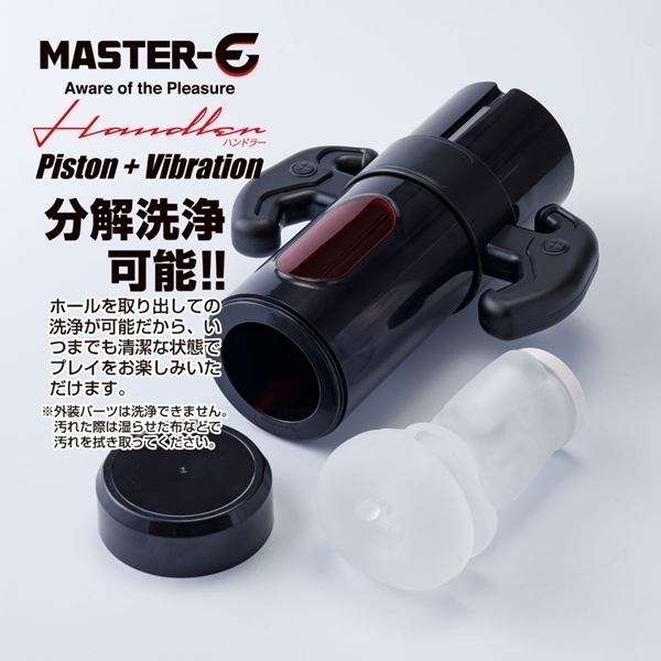 男性のセルフケアを追求し、快適で新しい快感の形を目指す『Master-E』シリーズ。単純な機能だけではなく、持ちやすくストレスフリーで遊べる電動セルフケア・ガジェットの登場です。このハンドラーは振動とピストン機能を搭載した電動セルフケア・ガジェットです。全体を包み込み上下に揺れることで官能的な刺激を与え、小刻みに震えることで快感を増幅させます。全9種類の振動・ピストンパターンを搭載しており、お好みの官能を得られることでしょう。またハンドルが付いており、持ちやすさが大幅にアップ!ストレスなくプレイを体感することが可能です。ホール部分には人肌に近い弾力素材を採用し、使用感は抜群。またホールと本体を簡単に分割することができるので、使用後はホールを洗浄し、清潔さを保つことができます。便利なUSB充電式を採用し、およそ60分の充電で、60分間の使用が可能です。ストレスなく、気軽に、ピストン&振動を楽しむことが可能なMASTER−Eハンドラー。電動セルフケア・ガジェットの新たな地平をお楽しみください。