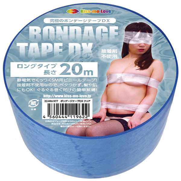 ソフトSMの必需品!粘着剤や糊などは不使用で、静電気でくっつくボンデージテープです♪静電気式なので髪の毛やデリケートな部分にも気兼ねなくグルグル巻き付けられて、終わった後はクルクルと巻き取れるだけ!粘着剤不使用なのでベタつきや粘着跡もなく、何度でもご使用いただけます♪貼り直しも簡単で身体だけでなく、家具やグッズにしも使用可能!椅子などに縛り付ける拘束プレイやおもちゃを巻き付ける固定プレイなど、多彩なプレイバリエーションを楽しめます♪テープの長さは20mのロングサイズで4カラー展開、こちらはクリアタイプになります♪